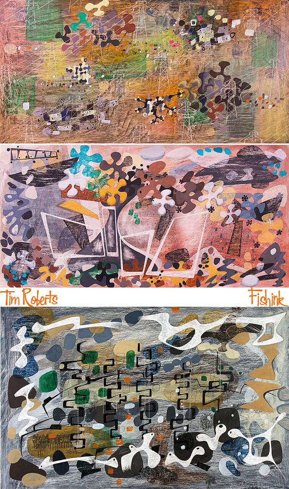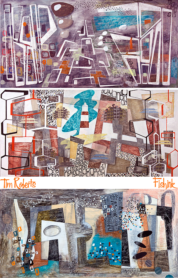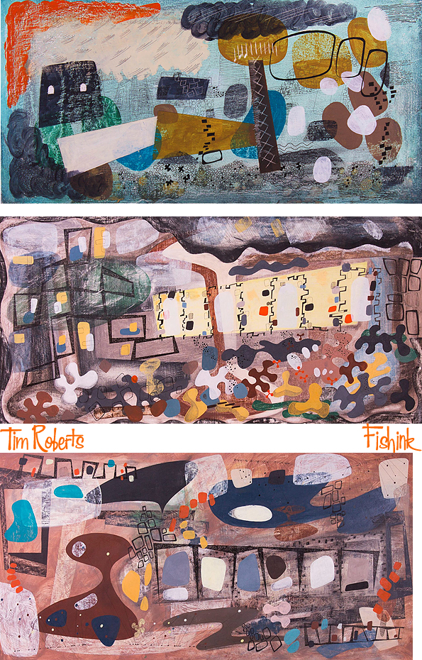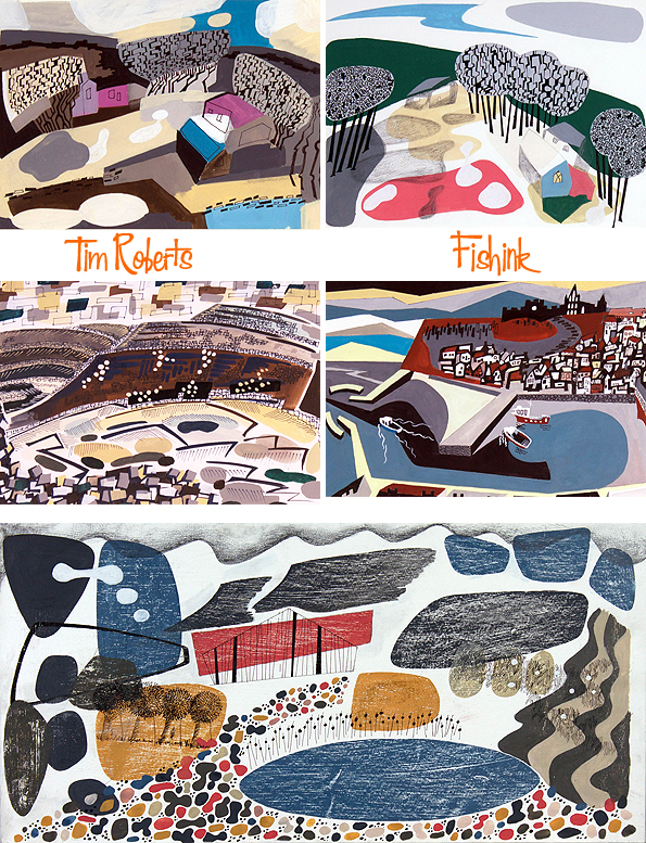 Tim Roberts studied fine art at the Sir John Cass School of Art and then at Chelsea School of Art back in the late seventies before taking a thirty-year career break, returning to full-time painting about six years ago. Describing himself as a continuing Modernist, his work for me conjures up motifs and an artistic ambiance of creatives like Paul Nash, Eric Ravilious, Barbara Hepworth, Enid Marx etc, but with his own personalised twist.