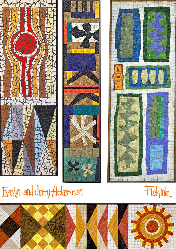 In the mid 1950s the Ackermans visited San Francisco and saw an exhibition that included mosaics. Interested in exploring the medium, they developed mosaic wall panels and tables with mosaic tops that featured both abstract and figural motifs.