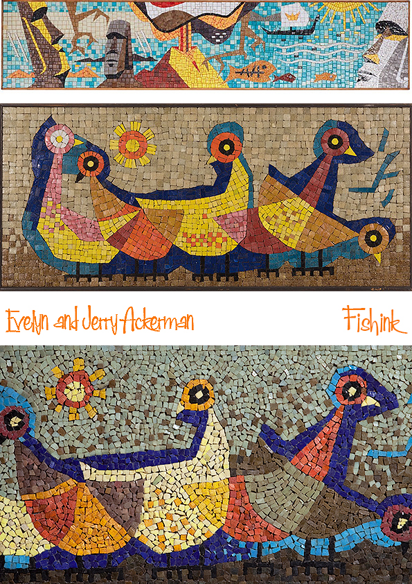 Welcome back to part 3 of my three part posting on the wonderful work of Evelyn and Jerry Ackerman. If you missed part 2 it’s here, and part 1 you can find here. This final post revealing the stylish work of the Ackerman’s, shows their creative imagery through Mosaics.