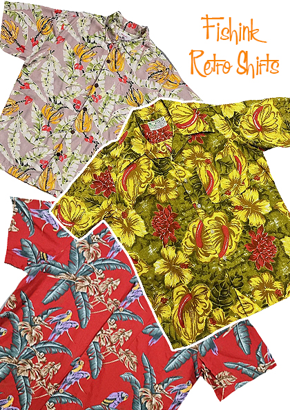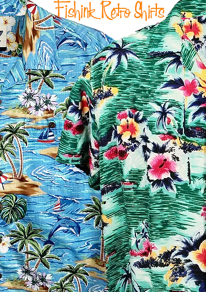 The Hawaiian shirt, is a style of dress shirt originating in Hawaii, also called the aloha shirt (Hawaiian: palaka aloha). They are collared and buttoned dress shirts, usually short-sleeved and made from printed fabric. They are traditionally worn untucked, but can be worn tucked into the waist of trousers. They are worn casually or as informal business attire in Hawaii. I’ve pulled together a collection of possibly vintage ones, to help tell the story of their remarkable popularity.