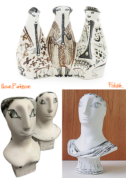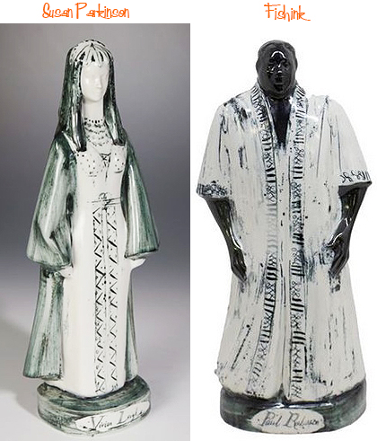 One unfortunate consequence was that they had to discontinue production of their 1958 set of theatrical figurines — the charming 12in-tall figures of Fonteyn, Gielgud, Leigh, Olivier and Robeson, commissioned from them by another pottery that had found its own earthenware unequal to the task. It was agreed that they would be paid £2 a figurine produced, but when the slipcasting proved especially difficult, with the moulds having to be made in several pieces, the Parkinsons realised the project was unsustainable, and production ceased. An idea of the amount by which they had been underselling their talent can be gained from the sums charged by the commissioning pottery when those figurines that were made were sold at the Design Centre in London in 1959: 10 guineas each, 40 guineas a set.