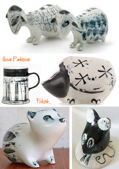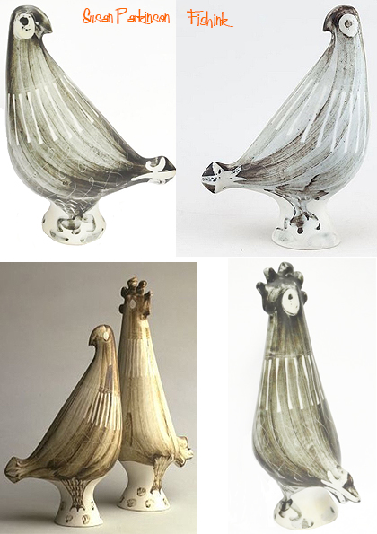 The next year, they launched a characterful porcelain cockerel and hen set, one example of which unsurprisingly found its way via Henry Rothschild’s Primavera gallery in Sloane Street into the V&A’s Ceramic Study Galleries. Some 40 years later, the decorative art dealer Tim Smith-Vincent fell in love with a second-hand set that he saw in a shop window and became an avid collector of Parkinson pieces. In 2004 he co-wrote with Carol Cashmore an overview of their work, Susan Parkinson and the Richard Parkinson Pottery.