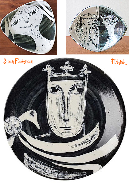 In 1949 she married the potter Richard Parkinson and moved with him to an oasthouse in Kent where, in 1951, she helped to launch the Richard Parkinson Pottery. They had an early success with a whimsical porcelain lion and unicorn, originally intended to be marketed in connection with the 1951 Festival of Britain. Unable to produce a sufficient run in time, they had them approved instead, with the addition of an E II R monogram, as commemorative pieces for the Queen’s Coronation in 1953.