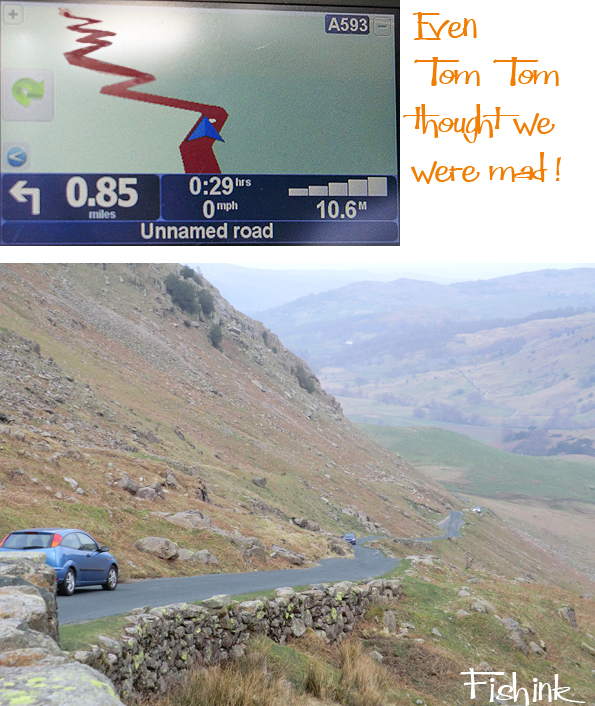 The road back to the motorway was as impressive in it’s decent as the soaring hills had been in their climb to the skies. The Hardknott Pass, on the site of an old Roman road, vies with Rosedale Chimney Bank in North Yorkshire for the title of steepest road in England with both achieving a gradient of 1 in 3 (about 33%) !