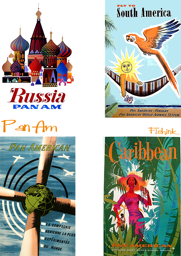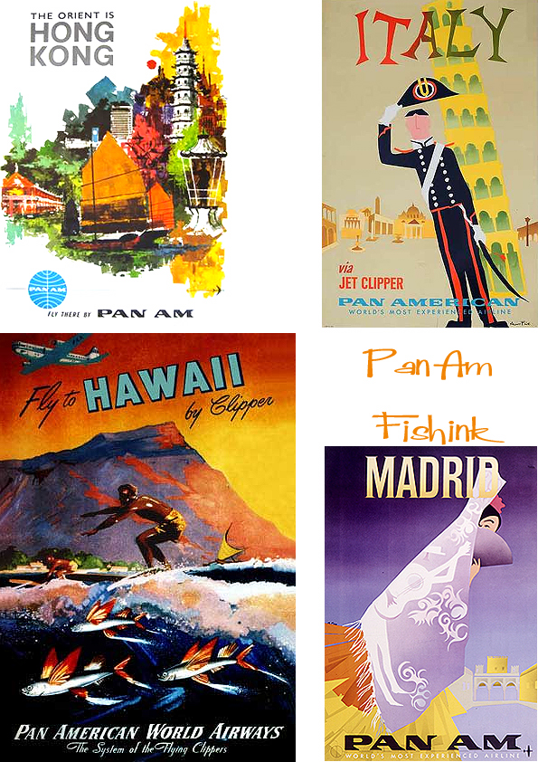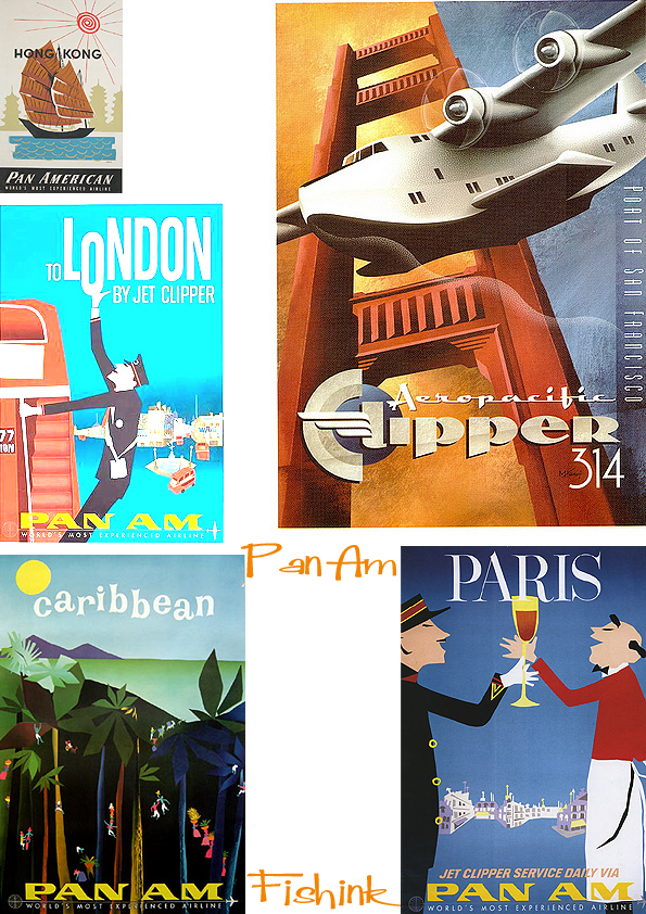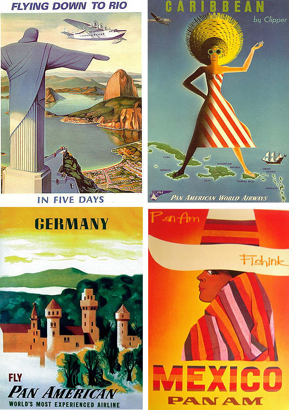 I watched a very informative programme on the BBC last night all about the sadly now bankrupt, but once world leading airline company, Pan Am. The airline was launched on October 27, 1927 and lasted up until the early 90’s when a bomb exploded a Boeing 747 over Lockerbie and scared the public away from flying for some time. There’s so much info out there on sites like Wikipedia but Pan Am was without a doubt, the most luxurious way to travel for at least 40+ years. There’s some amazing posters I’ve come across to celebrate all the countries they would do scheduled flights to in their amazing Clippers.