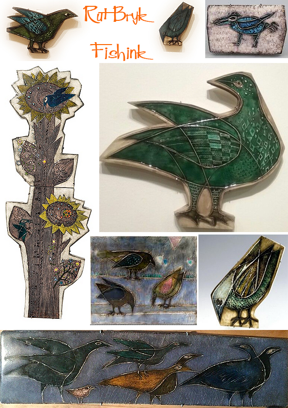 Birds and butterflies were an important theme for Rut. Both represented the artist with the momentary movement of beauty. The bird and egg themes both symbolise the cycle of life. Her favorite bird was a crow, a more earthly symbol rather than a lofty one.