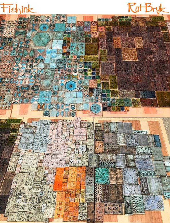 I imagine she enjoyed creating all these ceramic plaques and in using her skills as a colourist to make the end results positively shine.
