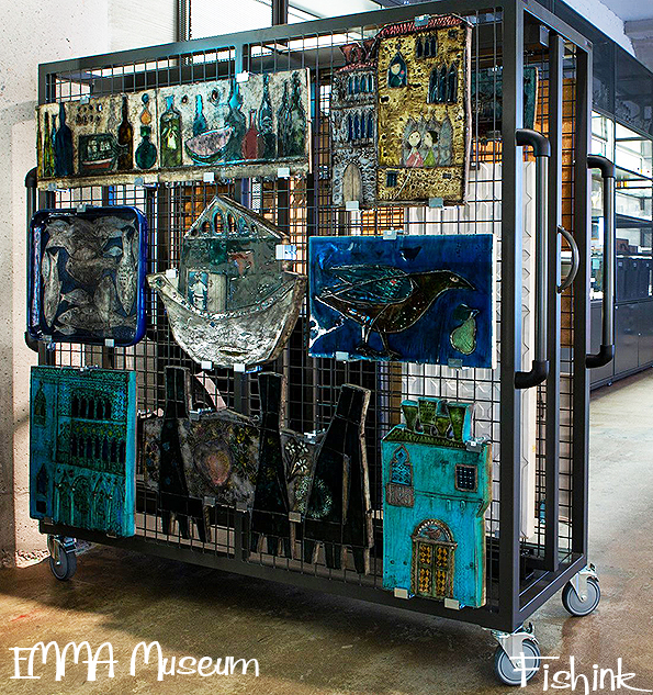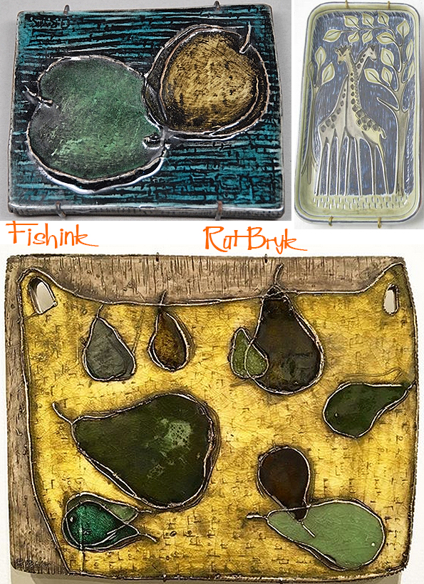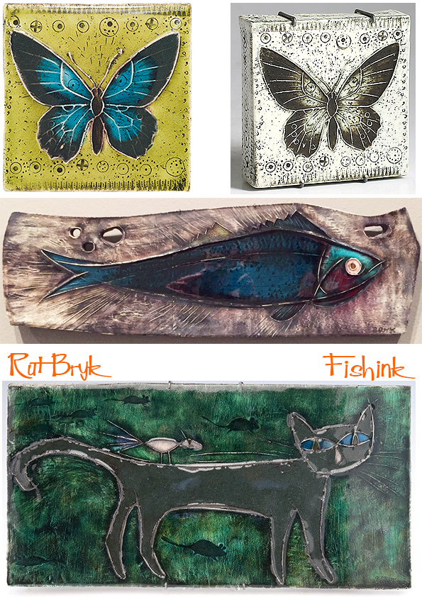 I imagine she enjoyed creating all these ceramic plaques and in using her skills as a colourist to make the end results positively shine.