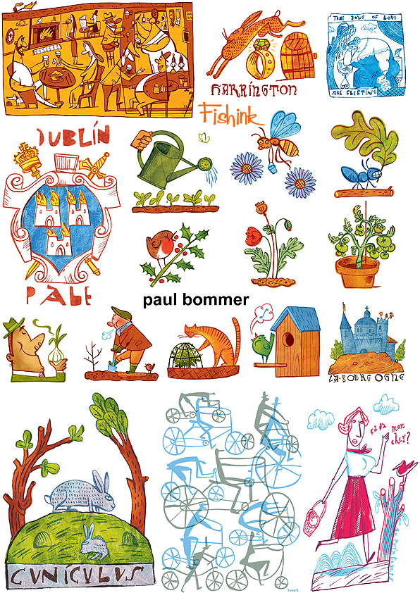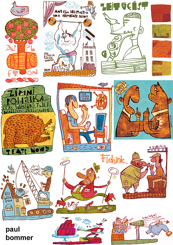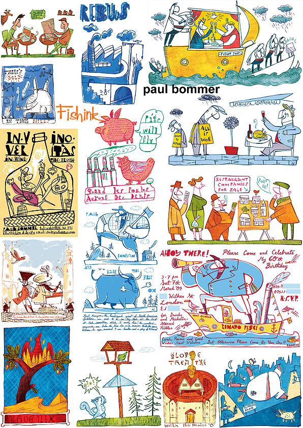 Since about 2008, I’ve been collecting images from the internet that have caught my eye. Way back then, I wasn’t so diligent in keeping records as to where images came from, or who had painted, photographed, illustrated or indeed created the artwork in the image. So I apologise in advance for their lack of referencing, but to be honest, it was purely about seeing groups of imagery together, that for whatever reason, I enjoyed. As I have managed to amass quite a few of these ‘collaged sheets’, I thought I would share them with you, in the hope that they may also provide some inspiration to you the readers, from their shape, colour, texture or out and out randomness : ) Today’s selection is heavily influenced by the ever so fabulous work of Paul Bommer.