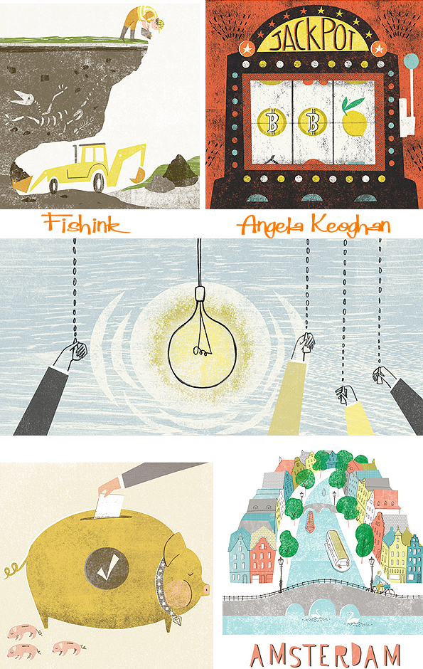 I did produce quite a lot of stuff like that in the mid ’00s when I used to share an annual open house exhibition in Brighton with another illustrator, Oliver Hydes. That was before I’d really discovered scraperboard, and it was the scraperboard that clients started asking for, so the other style did fall away a bit.
